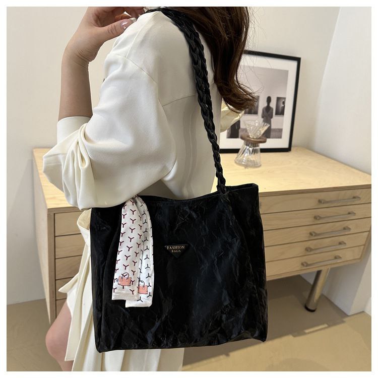 বাংলায়: প্রিমিয়াম কোয়ালিটির ব্ল্যাক-হোয়াইট চেক/গ্রিড প্যাটার্নের বড় সাইজের টোট ব্যাগ। উপরের অংশে সুন্দর পার্ল (মুক্তো) চেইন ও ক্রিম/অফ-হোয়াইট কালারের PU লেদার হ্যান্ডেল। ব্যাগের ফ্যাব্রিকের সাথে চেক ডিজাইন করা, যা একদম চ্যানেল স্টাইল লুক দেয়। ভেতরে প্রশস্ত স্পেস, জিপার পকেট ও ছোট পকেট আছে। দৈনিক ব্যবহার, অফিস, কলেজ, শপিং বা পার্টি – সব জায়গায় পারফেক্ট। হালকা ওজনের হলেও খুবই মজবুত। সাইজ: প্রায় ৩৫×৩০×১২ সেমি (বড় সাইজ)। একদম ট্রেন্ডি ও ক্লাসি লুক।