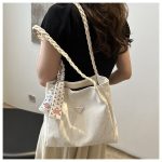 ইংরেজিতে (যদি ফেসবুক/ইনস্টায় বিদেশি কাস্টমারও থাকে): Premium Quality Large Tote Bag in Classic Black & White Check/Grid Pattern. Features elegant pearl chain decoration with cream/off-white PU leather handles and silver-tone hardware. Chanel-inspired sophisticated look. Spacious interior with zipper pocket and small compartments. Perfect for office, college, shopping, or parties. Lightweight yet very sturdy. Approximate size: 35×30×12 cm. Trendy, classy and timeless design. Ready stock!