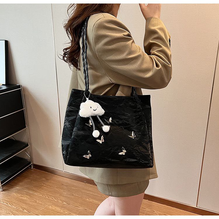 ইংরেজিতে (যদি ফেসবুক/ইনস্টায় বিদেশি কাস্টমারও থাকে): Premium Quality Large Tote Bag in Classic Black & White Check/Grid Pattern. Features elegant pearl chain decoration with cream/off-white PU leather handles and silver-tone hardware. Chanel-inspired sophisticated look. Spacious interior with zipper pocket and small compartments. Perfect for office, college, shopping, or parties. Lightweight yet very sturdy. Approximate size: 35×30×12 cm. Trendy, classy and timeless design. Ready stock!
