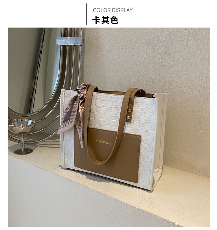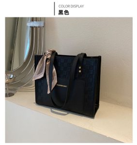 বাংলায়: প্রিমিয়াম কোয়ালিটির ব্ল্যাক-হোয়াইট চেক/গ্রিড প্যাটার্নের বড় সাইজের টোট ব্যাগ। উপরের অংশে সুন্দর পার্ল (মুক্তো) চেইন ও ক্রিম/অফ-হোয়াইট কালারের PU লেদার হ্যান্ডেল। ব্যাগের ফ্যাব্রিকের সাথে চেক ডিজাইন করা, যা একদম চ্যানেল স্টাইল লুক দেয়। ভেতরে প্রশস্ত স্পেস, জিপার পকেট ও ছোট পকেট আছে। দৈনিক ব্যবহার, অফিস, কলেজ, শপিং বা পার্টি – সব জায়গায় পারফেক্ট। হালকা ওজনের হলেও খুবই মজবুত। সাইজ: প্রায় ৩৫×৩০×১২ সেমি (বড় সাইজ)। একদম ট্রেন্ডি ও ক্লাসি লুক।
